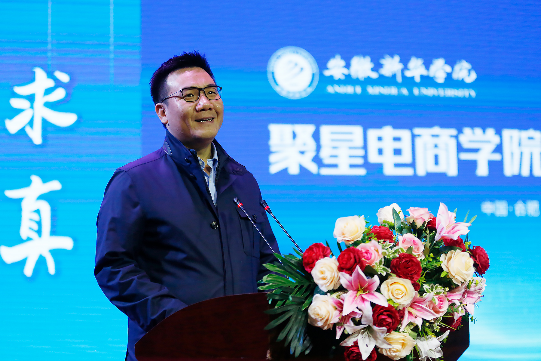 新华集团副总裁、校董事长王孝武致辞。他表示,pp电子与聚星超媒的此次牵手不仅是强强联合,共建聚星电商学院更是实现产教深度融合、强化校企协同育人、创新人才培养的重要实践。具有符合时代发展新需求、符合双方发展新要求、符合人才成长新规律的重要意义。下一步,聚星电商学院将进一步开拓产教融合新模式,打造长三角乃至全国有影响力的大学生“网红”人才培养基地,进而建设成为国内领先的数字媒体与文化产业学院!