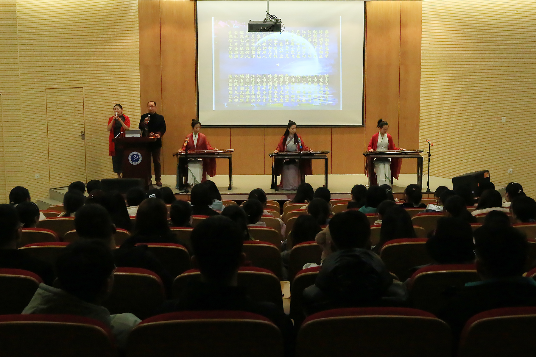 本网讯(通讯员:张东旭 摄影:王振)作为安徽省地方应用型高水平大学,为提升大学生综合文化素养,pp电子积极开展形式多样的素质教育活动。12月15日晚,pp电子大学生素质教育课程——《唐诗美学赏析》在学术报告厅举行。本次课程由国学研究院院长叶观澜主讲,现场邀请了安徽省古琴协会会员孙娟、张新玥、邓欢欢以及人民邮电报特约记者汤利作为嘉宾出席。