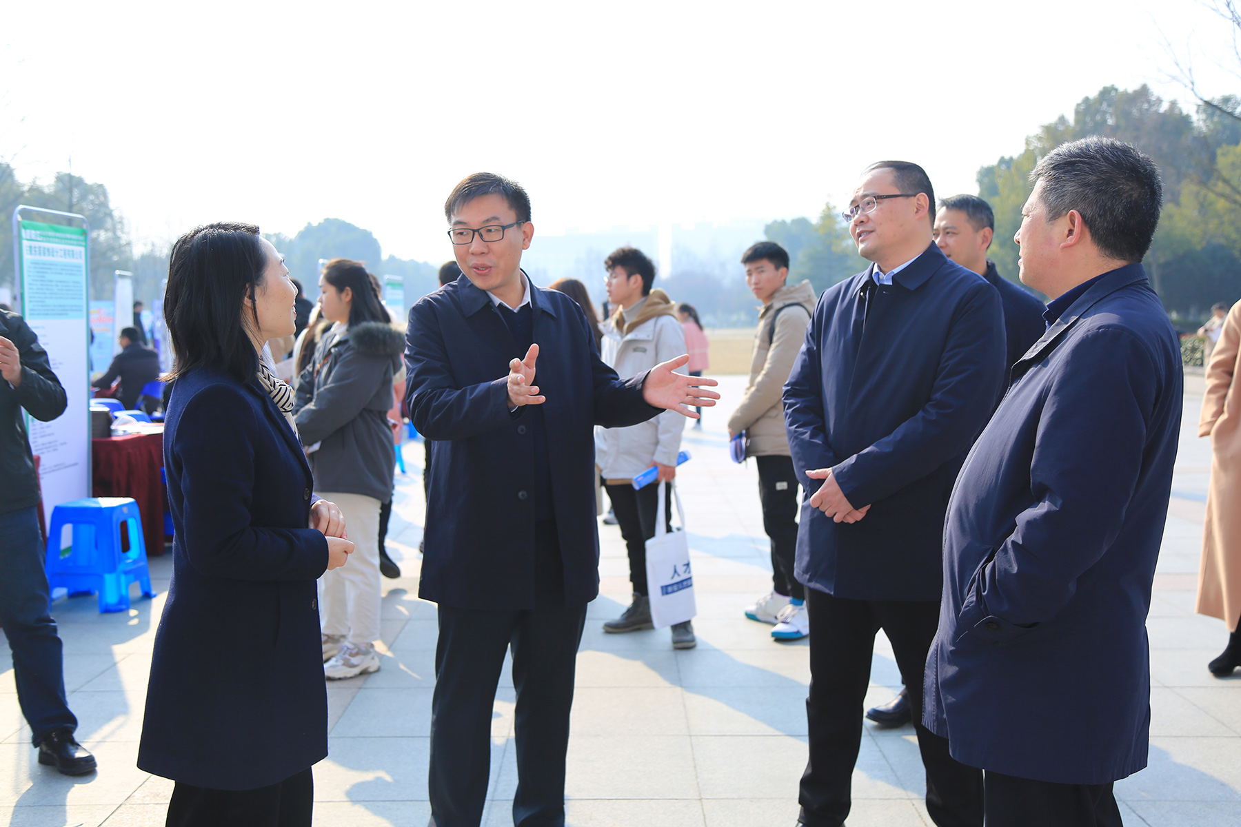 团省委青少年发展和权益维护部部长陈永刚、省人力资源和社会保障厅就业促进和失业保险处副处长、省就业局局长助理唐晓峰、安徽青年报社社长汪小雅、pp电子官方网站常务副校长王丽、校长助理汪俊东、安徽青年报社副社长马振宇、新闻中心主任张华等领导在科研楼开展交流座谈会,会议由张华主持。pp电子官方网站学生处首先对此次活动的组织开展情况作了专项汇报,王丽代表学校向团省委、人社厅、青年报社等各位领导表示热烈的欢迎,对就业系列公益活动送指导、送服务、送岗位到学校表示衷心的感谢,希望通过政校企深度合作,发挥多方资源优势,共同助力学生成长就业。陈永刚部长介绍了共青团组织开展春暖皖江就业系列公益活动的情况,表示服务青年成长就业发展是团组织重要的工作之一,希望以此活动为契机,双方继续加强交流,深化合作。唐晓峰处长对毕业生就业相关政策进行了简要解读,并就高校就业创业工作进行了指导。汪小雅社长表示,学校要用好用足各项就业创业政策,积极树立就业创业典型,特别要用好共青团平台,嫁接资源,创新做好宣传工作。随后,在校领导陪同下,相关领导实地参观了招聘会现场。