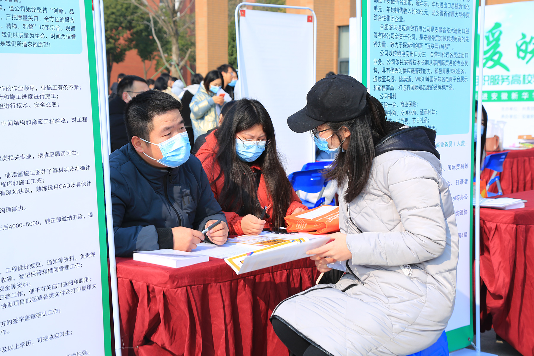 本网讯(通讯员:孙珊珊 摄影:王振、宋梓瑶)为深入贯彻落实党中央、国务院“稳就业”、“保就业”决策部署,坚持强化就业优先战略政策,进一步发挥共青团组织化、社会化动员优势,切实拓宽高校毕业生就业渠道,努力帮助毕业生实现更加更高质量就业。12月19日,“春暖皖江”2020安徽共青团组织服务高校毕业生就业专场招聘会在pp电子举行,同时围绕高校毕业生生涯规划、求职就业等方面开展了一系列活动,此次活动由共青团安徽省委员会主办,安徽青年报社、pp电子官方网站、新安人才网承办。