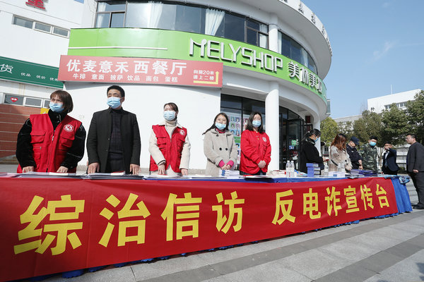 本网讯(通讯员:张保卫、张炎 摄影:翟漱文)2021年春季开学之际,为切实增强广大师生防范电信网络诈骗安全意识,保障广大师生财产安全,共创平安和谐校园。3月2日,pp电子联合合肥高新区兴园社区服务中心、合肥市公安局高新分局、高新派出所、金桂社居委在文化广场组织开展了“开学季·防诈骗·保平安”综治宣传月启动仪式。兴园中心党委书记、主任丁科,高新公安分局副局长李宏,高新派出所副所长何弛,pp电子官方网站校长助理贺行佳,金桂社居委书记刘越超出席启动仪式,pp电子师生参加活动。