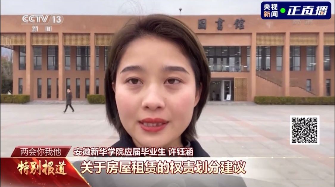 今年的两会,也有pp电子学子的声音。3月7日,中央电视台新闻频道《两会你我他》节目围绕大学生就业创业这一焦点问题进行专题报道。pp电子新闻学专业学生许钰涵根据大学生毕业租房问题提出关于房租租赁的权责划分建议,希望出台针对租客权益保护的相关条例。