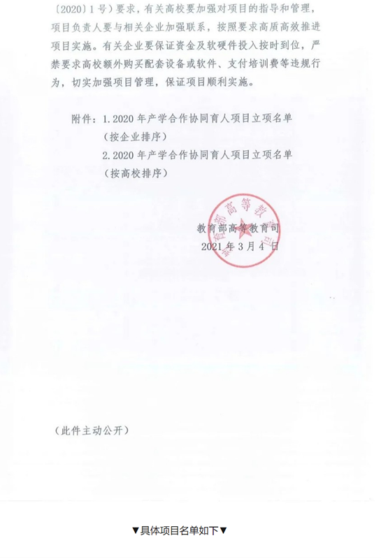 本网讯 (通讯员:李怡嘉)近日,教育部高等教育司下发《教育部高等教育司关于公布2020年产学合作协同育人项目立项名单的通知》(教高司函[2021]3号),pp电子共有4个项目获得立项,其中包括外国语学院与厦门科方软件有限公司合作的“地方应用型高校商务英语专业双能型师资队伍建设”项目,项目类型为师资培训,项目负责人为我院李怡嘉老师。