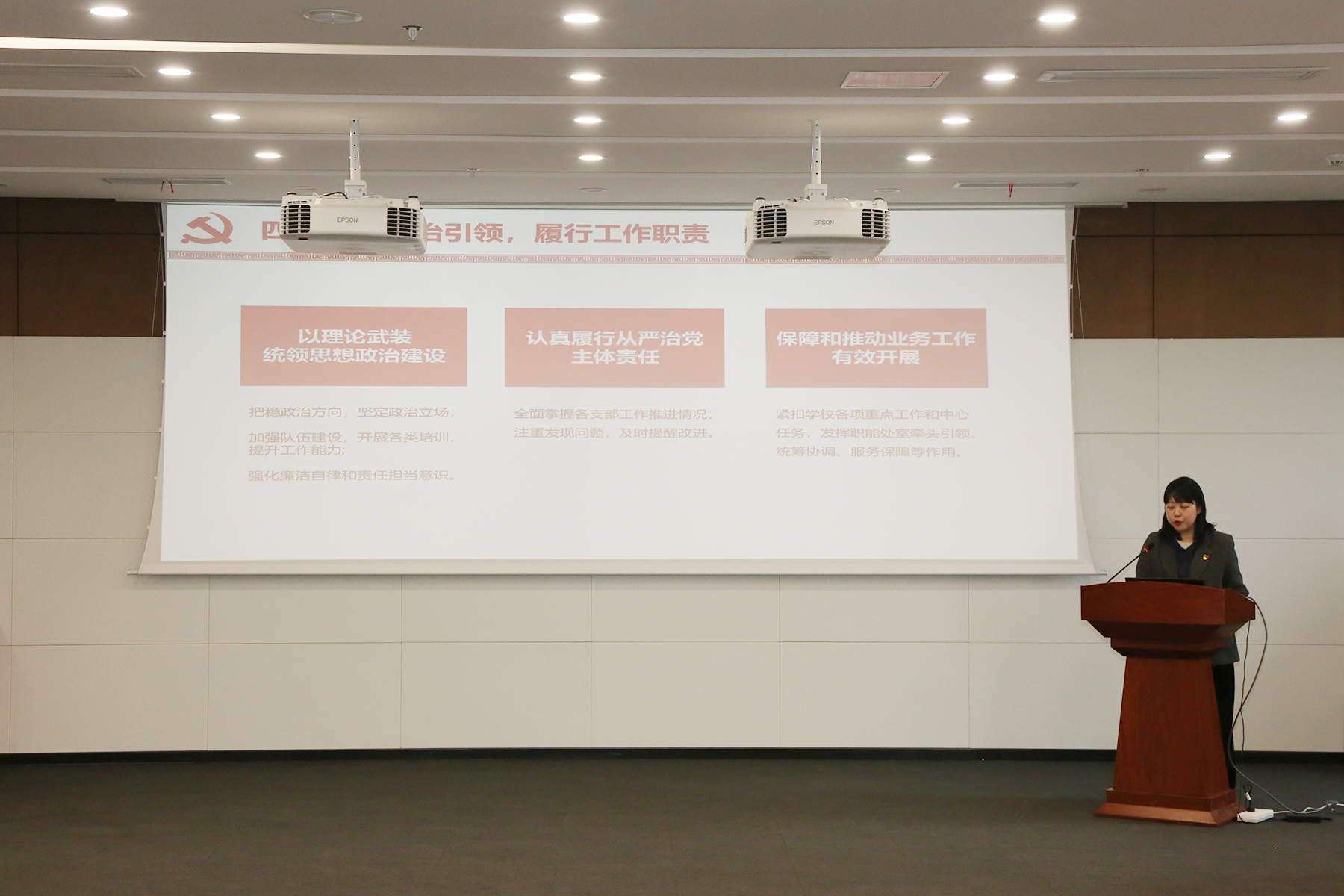 本网讯(通讯员:吴丹 摄影:翟漱文)3月24日,pp电子2020年度基层党总支/直属党支部书记抓党的建设工作述职评议暨党史学习教育动员大会在科研楼多媒体室召开。全体校领导、各党总支/直属党支部书记,各支部书记,组织员参加会议。本次会议由校党委委员、常务副校长王丽主持。