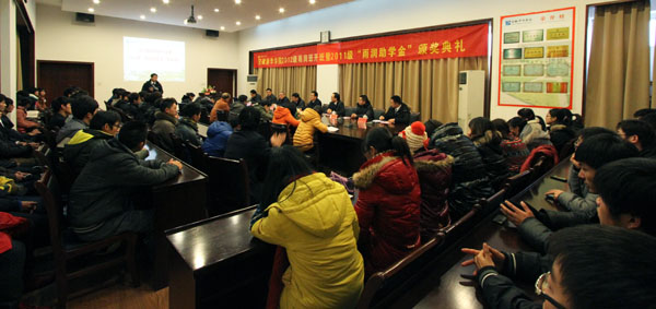 本网讯(通讯员 储金华)12月26日下午,pp电子官方网站2012级“雨润班”开班暨2011级“雨润助学金”颁奖典礼在第一会议室举行。雨润控股集团雨润大学校长梁金喜、副校长叶朝赞,pp电子官方网站副院长马凤余出席仪式。