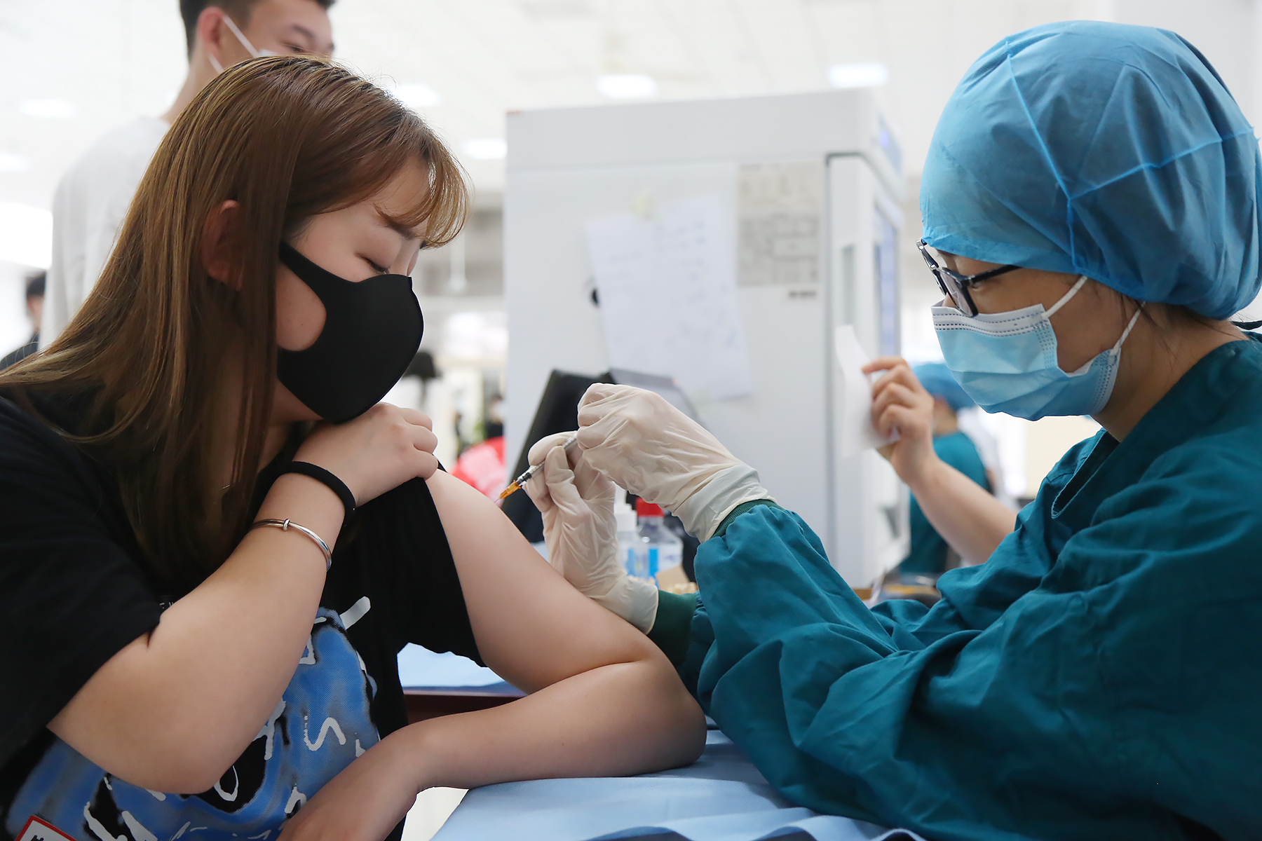 “完全没有痛感,也没有任何不良反应。”文化与传媒学院2017级广告学专业王芝娟说到,“本次为我们免费集中注射疫苗,体现了党和国家对我们大学生的关爱。希望大家都献出一‘臂’之力,共筑校园免疫屏障。”