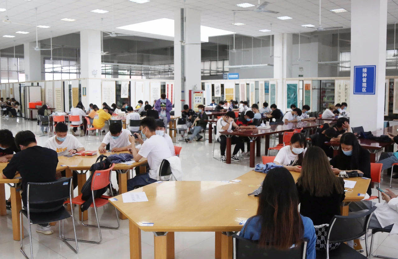 接种工作启动当天,师生们携带身份证,在图书馆北入口有序排队、登记信息,并出示健康码。医护人员认真核对接种者信息,询问近期身体状况,以确认是否具备接种条件。依托电子信息系统,严格落实“一人一苗一码”,实现疫苗全程可追溯。信息录入完毕后,师生跟随志愿者指引前往二楼有序进行疫苗接种、留观等流程。完成接种后,师生在接种留观区等待半小时,无任何不适且扫码填写《完成疫苗接种信息统计表》后方可从二楼南门离开。