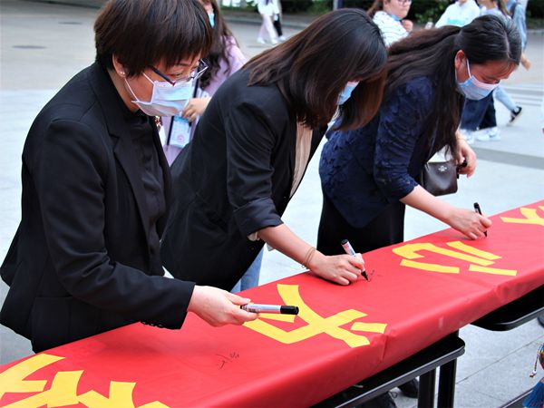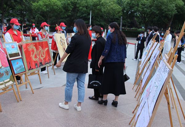 开幕式结束后,嘉宾们一起观赏茶画作品和心理健康手抄报作品、学生制作的植物精油皂、茶艺表演等,师生进行共同签名倡议垃圾袋装化,共创健康华园。