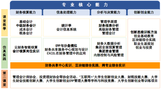 财务管理专业通过建设跨专业综合等实训平台,已形成“课程实验、专业综合实验、跨专业实验”的递阶式实验教学课程体系。通过打造高层次学科竞赛平台,巩固拓展智能财务特色的校外实践基地,有效提升了学生实践创新能力。