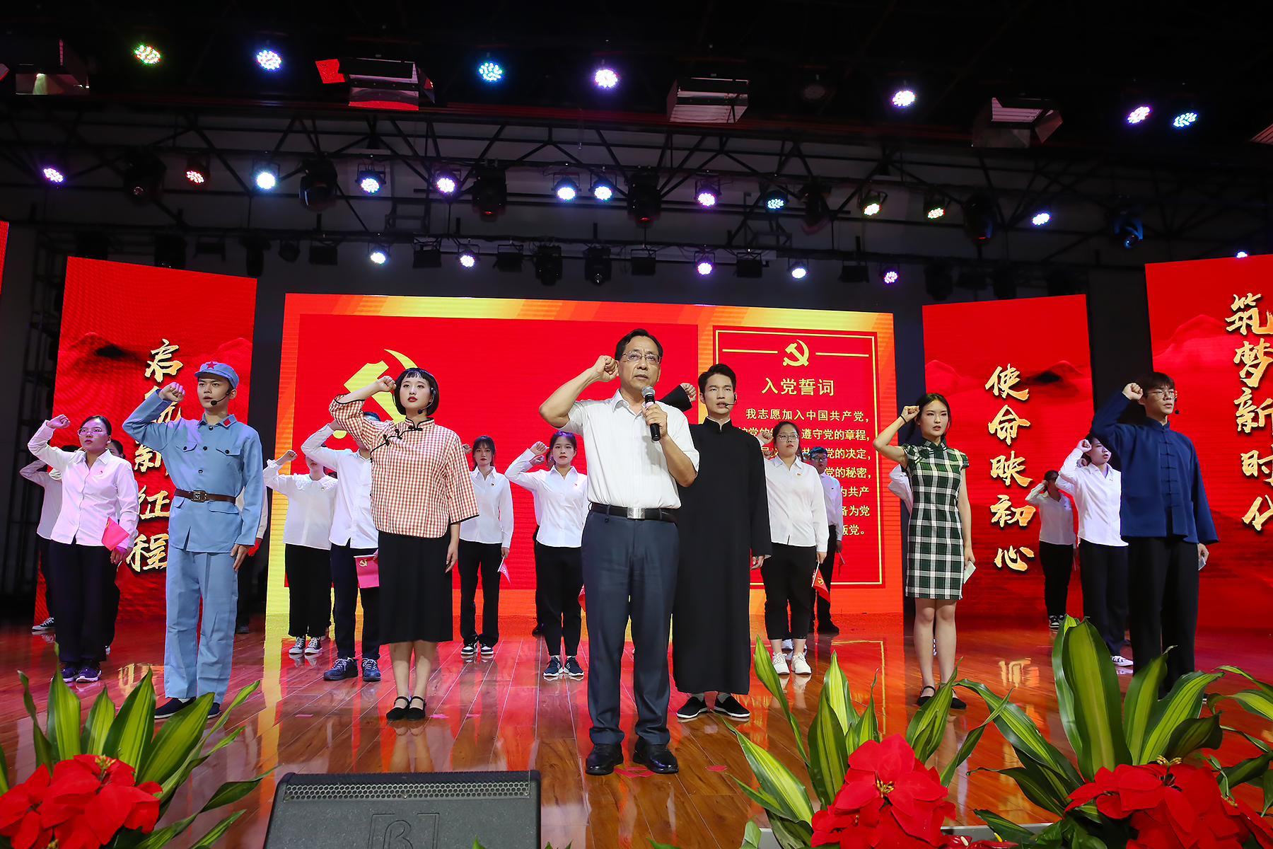 千秋伟业,百年只是序章。唯有初心如磐、使命在肩,党才能永葆青春活力。初心与使命渗透在每一个共产党人的家书中。在“永远跟党走”——pp电子官方网站庆祝建党一百周年表彰大会上,一封封《共产党人家书》让现场观众热泪盈眶。“我志愿加入中国共产党……”校党委书记邸建伟带领全体党员重温入党誓词,向党旗宣誓,读懂和坚守共产党人的初心与使命。