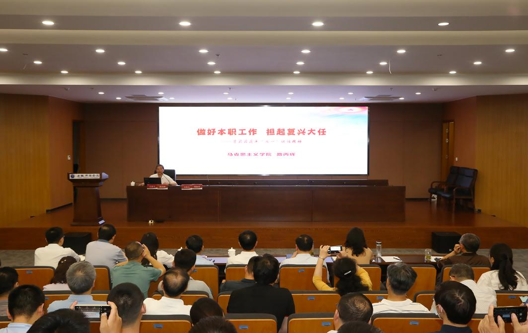 会上,路丙辉教授分享他的“七一”历程,讲述其参加中央重要活动,受习近平总书记亲切接见过程。同时,他从“一个庄严宣告、四大成就、九个必须、党的号召”四个方面解读习近平总书记“七一”重要讲话精神。报告内容深入浅出、通俗易懂,引导参会人员深入领会报告意义,深刻把握其丰富内涵,切实把思想和行动统一到习近平总书记“七一”重要讲话精神上来。