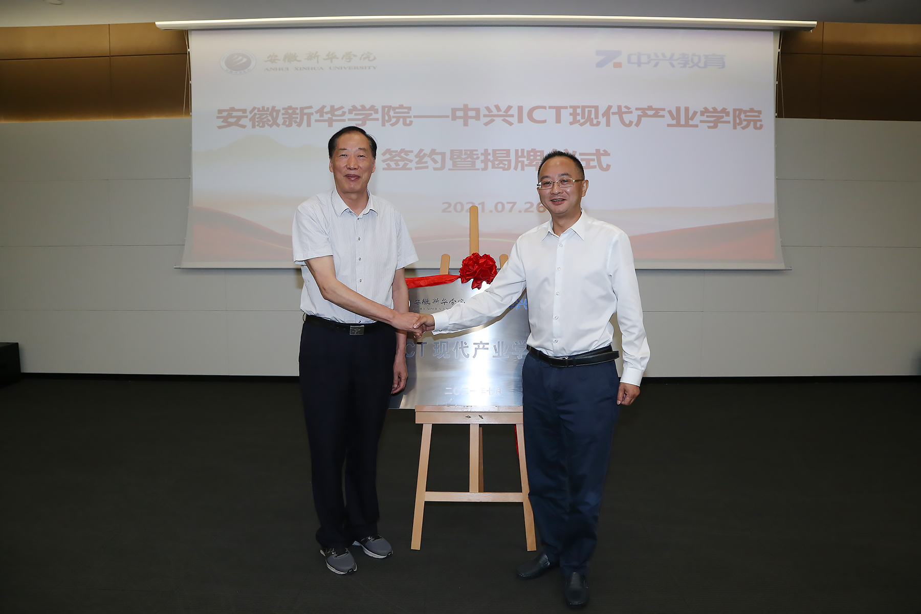 储国定与许高山共同为“pp电子官方网站-中兴ICT现代产业学院”揭牌。