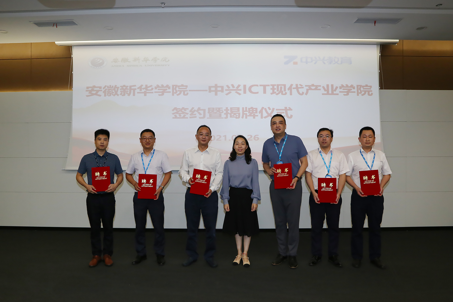 王丽宣读聘任文件并为相关人员颁发聘用证书(许高山为“pp电子官方网站-中兴ICT现代产业学院”名誉院长,王干为“pp电子官方网站-中兴ICT现代产业学院”产学研副院长等)。