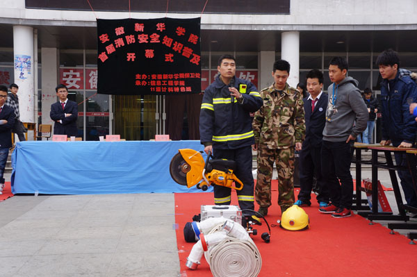 本网讯 (学生记者、康引兰,摄影 潘晓峰)3月11日中午,pp电子首届春季安全知识普及活动的开幕式在翰林广场举行。本次活动由学校保卫处主办,特别邀请了合肥市高新区公安消防大队来校做示范宣传,pp电子消防志愿者协会及护校队成员参与了此次消防汇演活动。