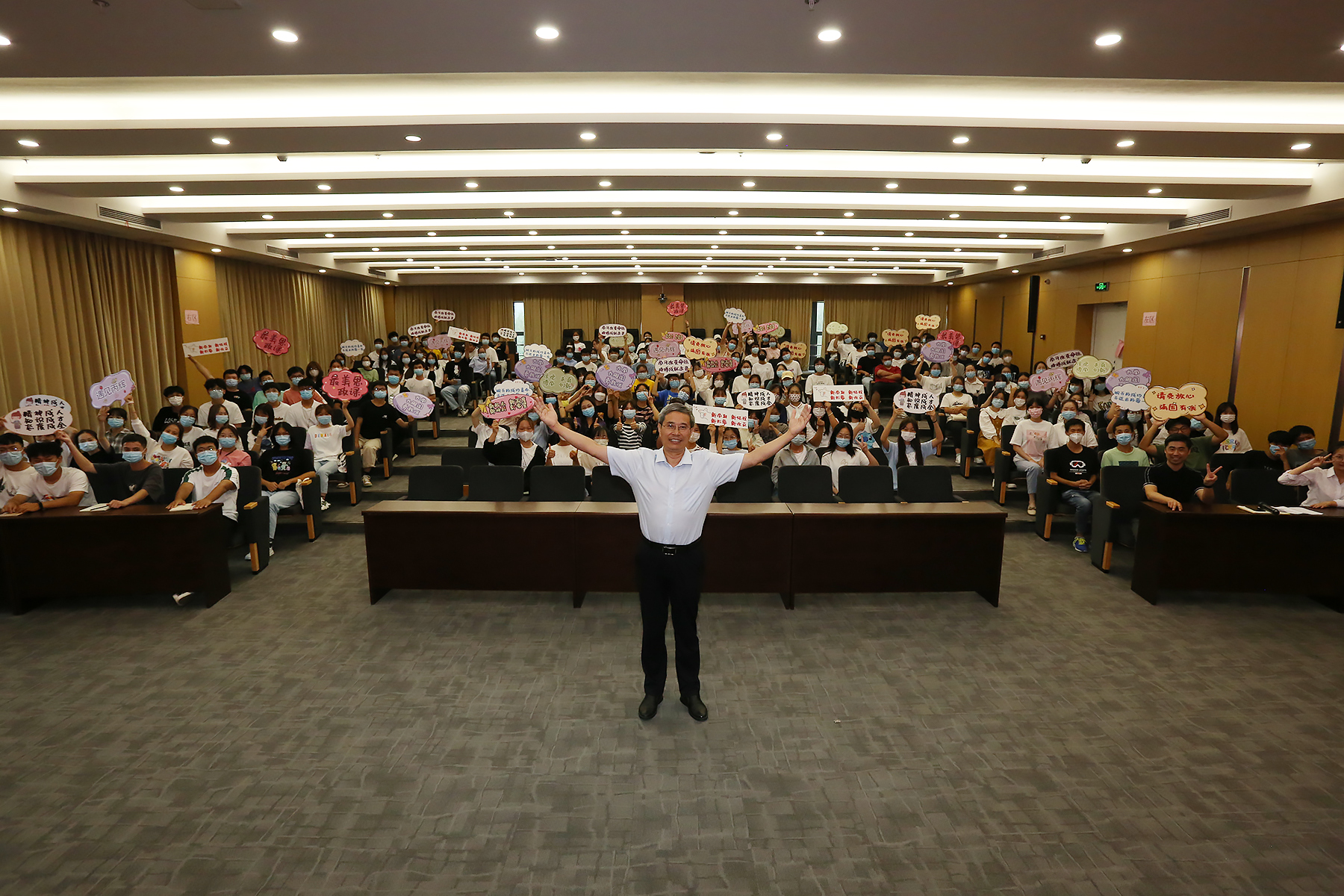 本网讯(通讯员: 夏阳 摄影:翟漱文)为进一步做好新生入学教育工作,帮助新生“开好头,起好步”,更好更快地适应大学生活,9月27日,pp电子举办“听全国最美思政课教师讲大学”讲座。“全国最美思政课教师”路丙辉教授应邀主讲。全校7000余名新生通过线上、线下相结合的方式听取讲座,线下讲座现场座无虚席。