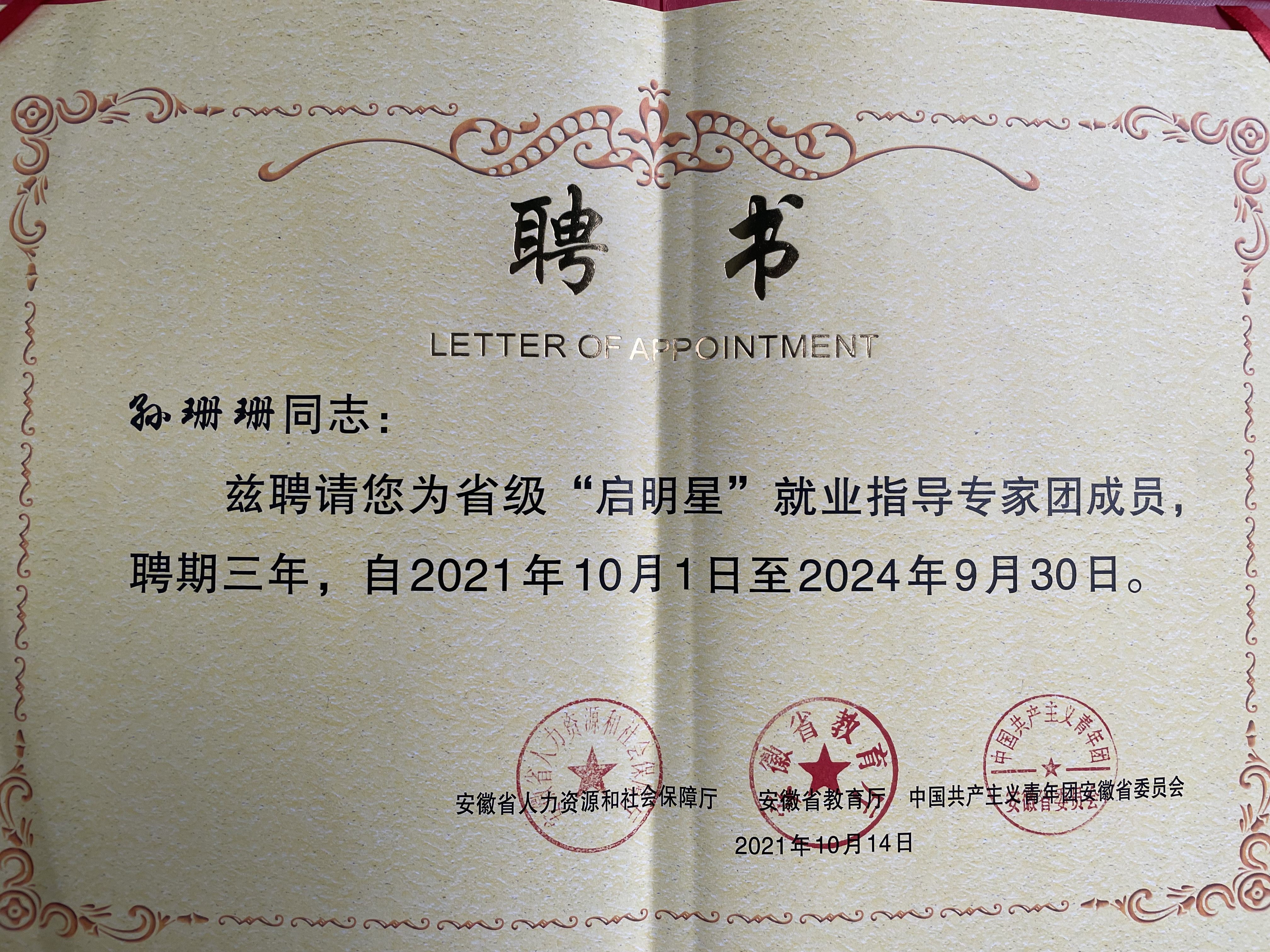 pp电子教师获聘为安徽省“启明星”就业指导团专家成员