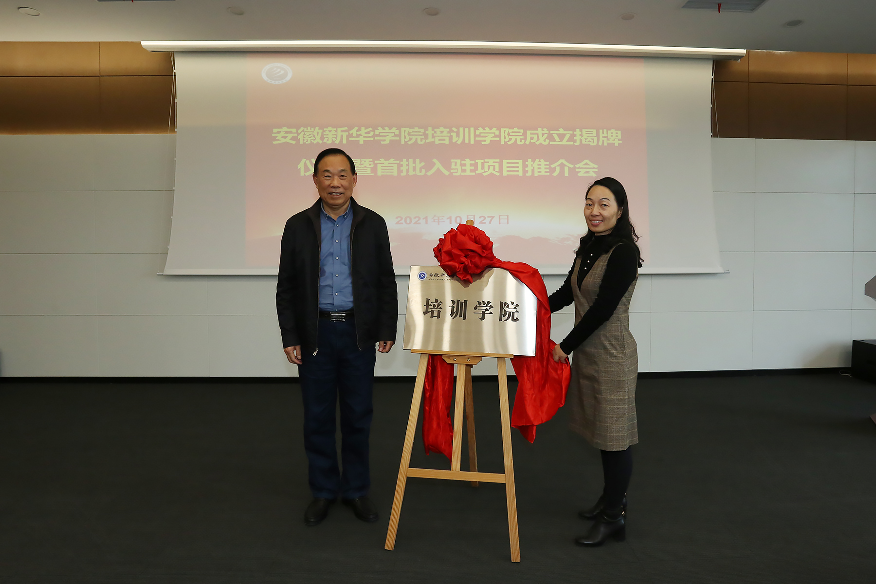首先,盛晓青宣读了《关于成立培训学院的通知》文件;紧接着,王丽和杨世国为培训学院揭牌。标志着培训学院工作正式启动,培训学院的成立将更好地统筹、规范全校培训工作,更好地服务校内学生及社会。