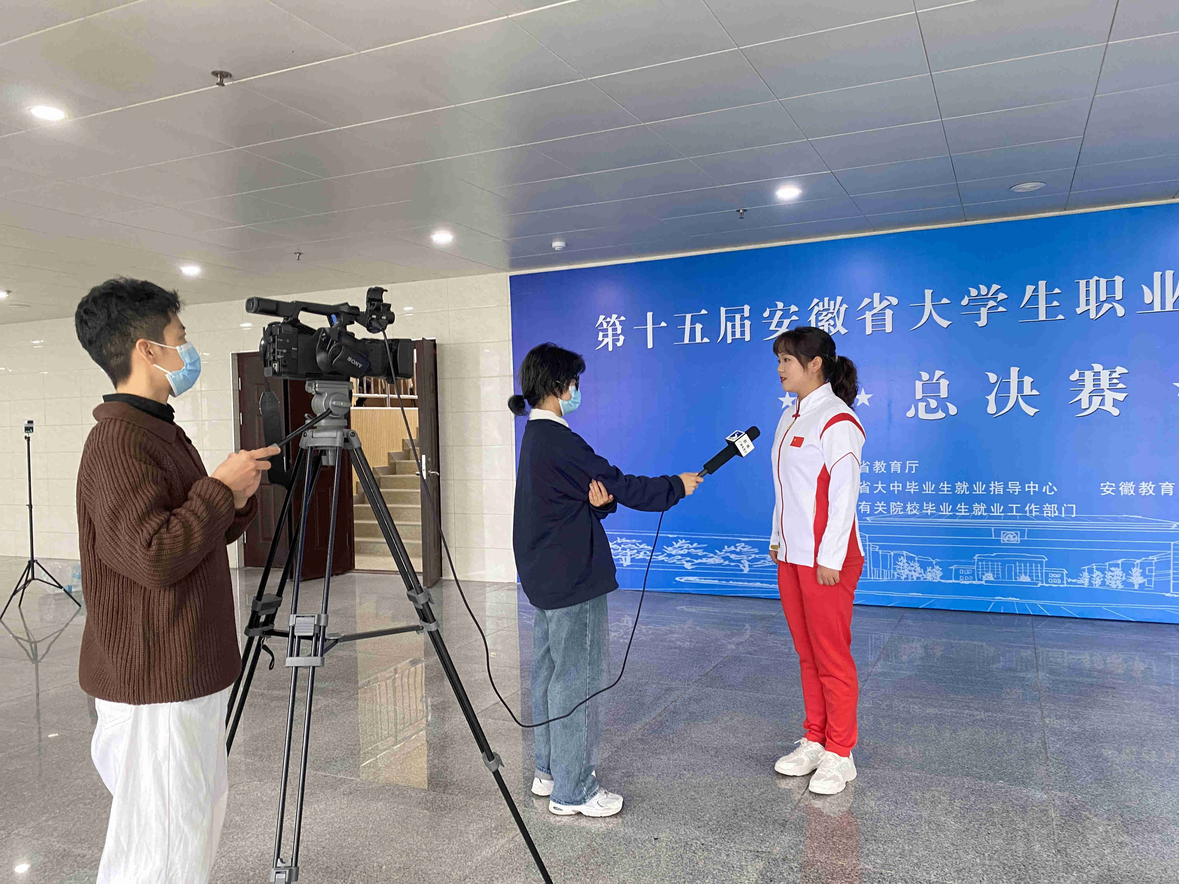 大赛结束后,pp电子谈震同学接收蚌埠广播电视台的采访报道。