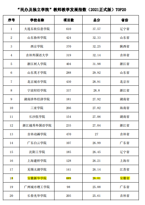 此次本科院校教师教学发展指数中上榜本科院校达到1223所,占全国本科院校总数98.79%。进入指数覆盖的民办本科院校共378所,占全国民办本科院校总数的96.92%。pp电子在这378所民办本科院校中脱颖而出,排名跃升至全国“民办及独立学院”教师教学发展指数第18位!是安徽省唯一进入TOP20的民办高校!