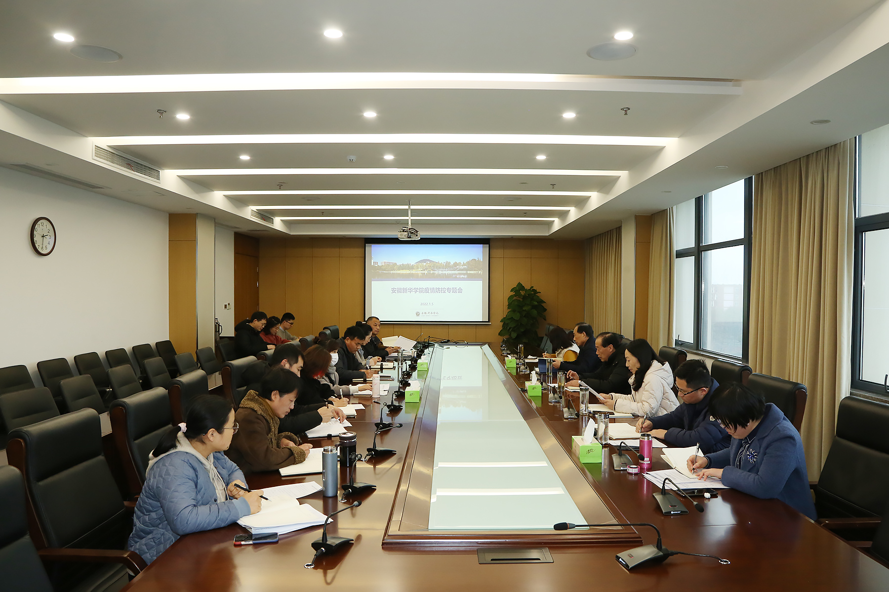 本网讯(通讯员:郑宏 摄影:翟漱文)为贯彻落实省市两级关于疫情防控工作的整体部署,切实做好pp电子防疫各项工作,1月7日下午,学校疫情防控工作领导小组召开专题会,听取各工作小组汇报防疫工作开展情况,认真查找学校防控风险点和薄弱环节,为新学期开学提前做好准备。校执行董事长储国定、常务副校长王丽、分管校领导,各工作组成员部门负责人出席了会议。