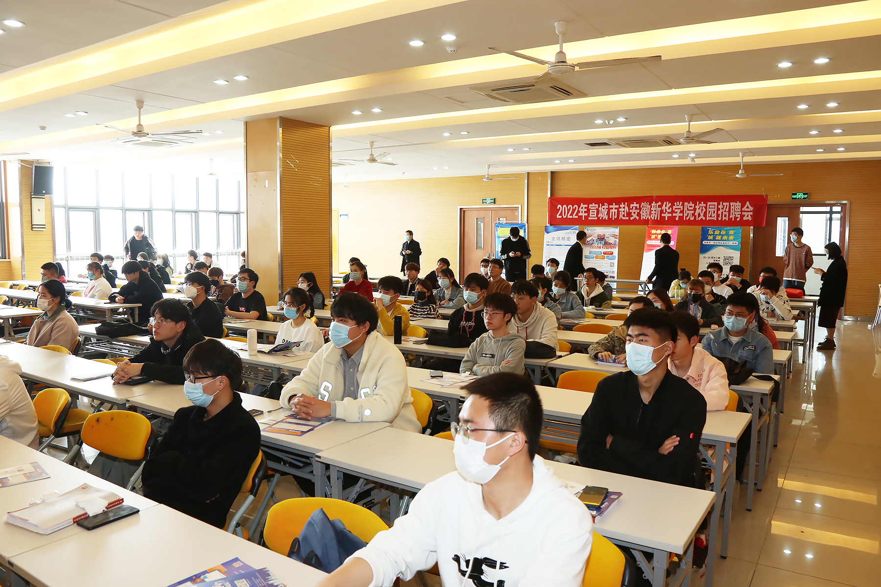 会后,宣城市委组织部一行在大学生活动中心举办宣讲推介会,约150余名学生参加此次宣讲会。会上,宣讲团对宣城的城市发展、人才政策进行详细介绍,并发布人才需求,随后相关重点企业负责人进行了现场宣讲活动,就企业发展、薪资待遇、人才培养向参会学生做具体说明,与学生热情互动,解答相应问题,现场气氛热烈,近50名学生达成求职意向。