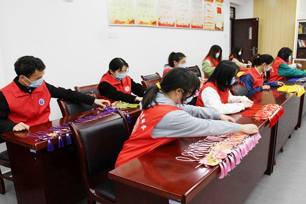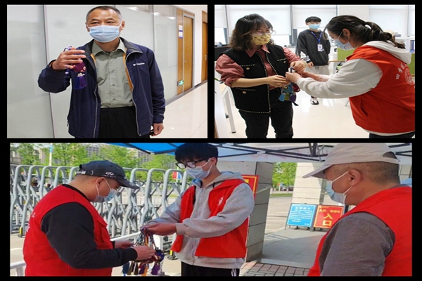 药学院学子将制作的香囊亲手送到核酸检测的医护人员、信息员、志愿者手中,送给日夜坚守巡逻的保安大叔、公寓楼的阿姨、校园环卫工人、后勤食堂服务人员,还有坚守网格值班的老师们、与同学们同吃同住的辅导员们。