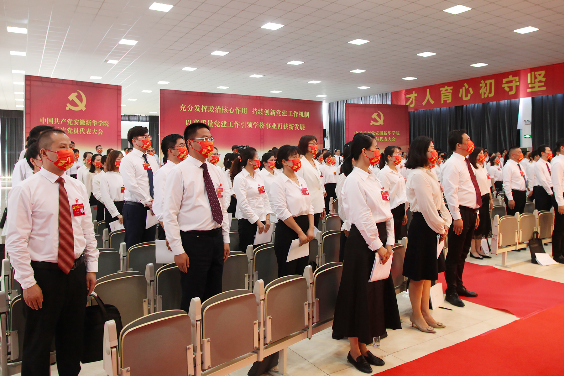 本网讯(通讯员:王亚君 摄影:翟漱文 陆如海 金政 方善润 胡倩)奋进新征程,砥砺新担当。7月8日上午9时,在庄严的国歌声中,中共pp电子官方网站第三次党员代表大会在校大礼堂隆重开幕。省委教育工委委员、省教育厅副厅长张庚家,省委教育工委组织干部处一级调研员朱晓明,新华集团董事长吴俊保、副总裁王孝武、行政人事部部长黄君婕出席开幕式。pp电子官方网站储国定、邸建伟、赵良庆、王丽、戴昕、胡昭林、贺行佳、王琦进、盛晓青、邵玲、蒋亚龙等同志在主席台就座。邸建伟代表中共pp电子官方网站第二届委员会作了题为《充分发挥政治核心作用 持续创新党建工作机制 以高质量党建工作引领学校事业新发展》的工作报告,会议由王孝武主持。学校各单位、各部门助理及以上管理人员列席开幕式。