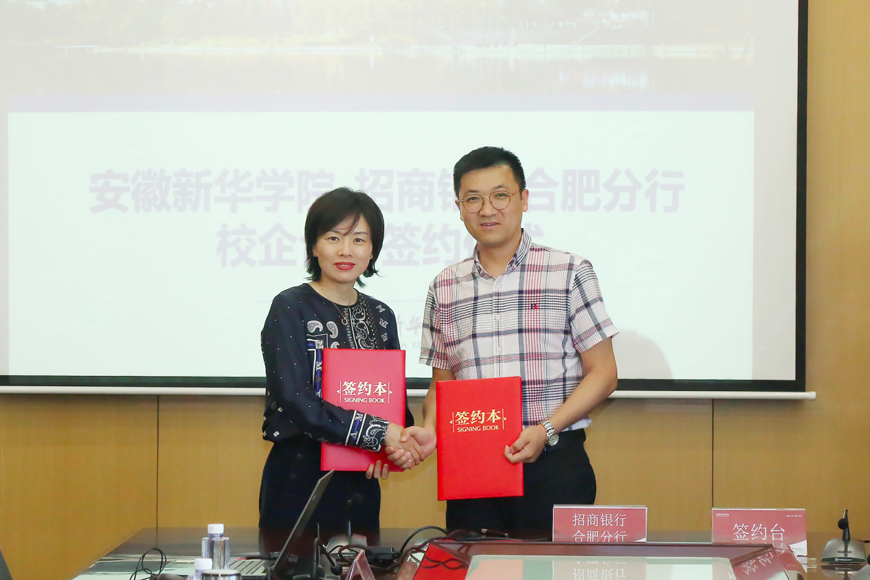 本网讯(通讯员:张璐、屈文静 摄影:翟漱文)为贯彻落实国家“以企业为主体、市场为导向、产学研相结合”的科技发展战略,充分发挥高校服务地方经济社会发展的功能,7月19日下午,pp电子官方网站与招商银行合肥分行举行校企合作签约仪式。招商银行合肥分行党委委员、副行长李健、人力资源部负责人韩友诚、新经济战略客户团队总经理夏艺、零售银行部总经理俞洋、人力资源部总经理助理何贵波、新经济战略客户团队主管肖灵素等出席仪式。新华集团总裁张明、pp电子官方网站执行董事长储国定、常务副校长王丽、校长助理王琦进,以及相关职能部门、二级学院负责人等参加了仪式。