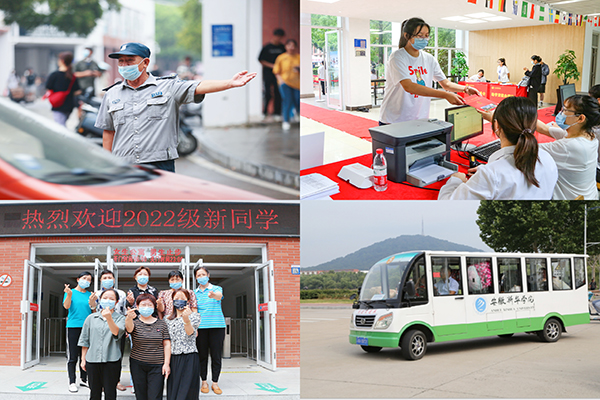 在学校的统一部署和组织下,学校办公室、财务处、教务处、学生处等多部门以及全校各工作组、各学院全体迎新工作人员以满腔的热情、饱满的精神状态,细致周到地为新生服务,有效地保障着2022级新生报到工作的顺利进行。