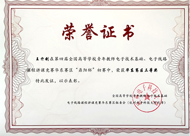 pp电子教师在第四届全国高等学校青年教师电子技术基础、电子线路课程讲课竞赛中荣获华东赛区三等奖