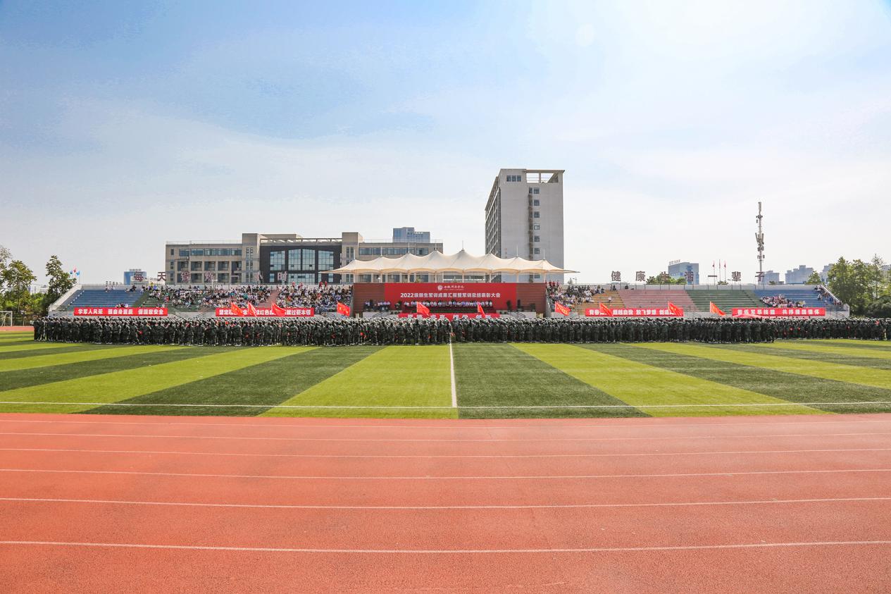 本网讯(通讯员:孙珊珊 王亚君 融媒体工作室 敖雨萱 摄影:朱微波 陆如海 沈智伟)9月12日上午,pp电子官方网站2022级新生军训成果汇报暨军训总结表彰大会在祥云体育场举行。校执行董事长储国定,省督导专员、校党委书记邸建伟,合肥市蜀山区人民武装部部长张荣春,校党委副书记、常务副校长王丽,副校长戴昕、李金星、贺行佳,高级顾问胡昭林,校长助理王琦进、盛晓青、邵玲,各二级学院院长、执行院长,各职能处室负责人出席本次大会。大会由贺行佳主持。