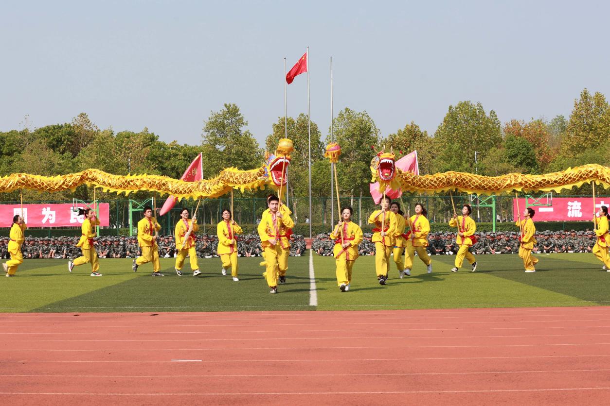 秋日骄阳当空照,朵朵白云映衬着热闹的体育场,锦色长龙翻腾起舞,雄狮在铿锵有力的锣鼓声中欢腾跳跃,舞龙舞狮表演《龙腾新华》带动了全场的气氛,舞出了新华园学子的精气神。排舞《一起向未来》洋溢着青春的活力与风采,用跃动的舞姿向冬奥精神致敬。一招制敌,一拳制胜,《擒敌拳》一气呵成,势不可挡!行云流水的《军体拳》一招一式,尽展军颜,尽聚军魂,尽显军人风范。在教官铿锵有力的指挥口令下,同学们齐展雄姿,精神抖擞出刀起势。刺、闪、挥、劈、挡……《刺杀操》表演队列整齐划一,动作规范到位。