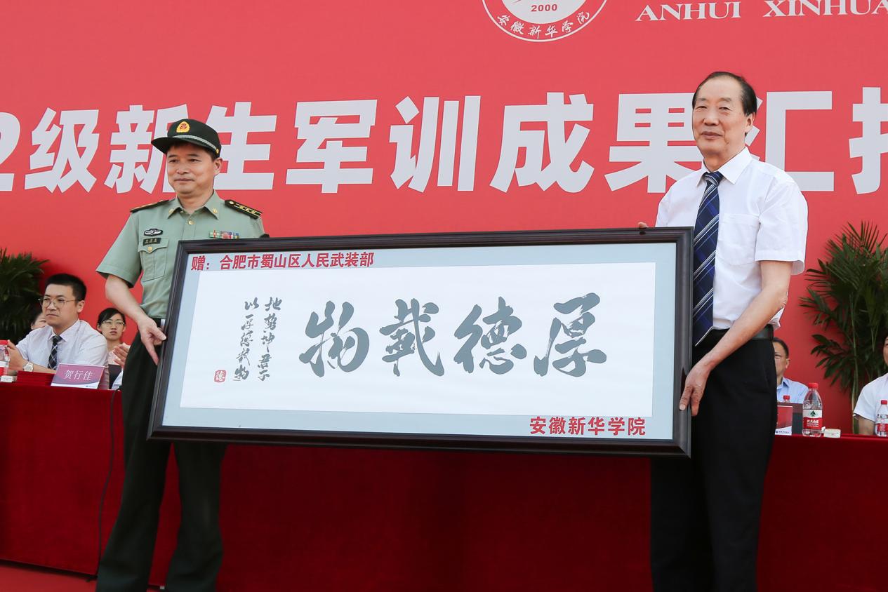 表演结束后,储国定代表学校向承训部队赠送牌匾,张荣春代表承训部队向pp电子赠送锦旗。