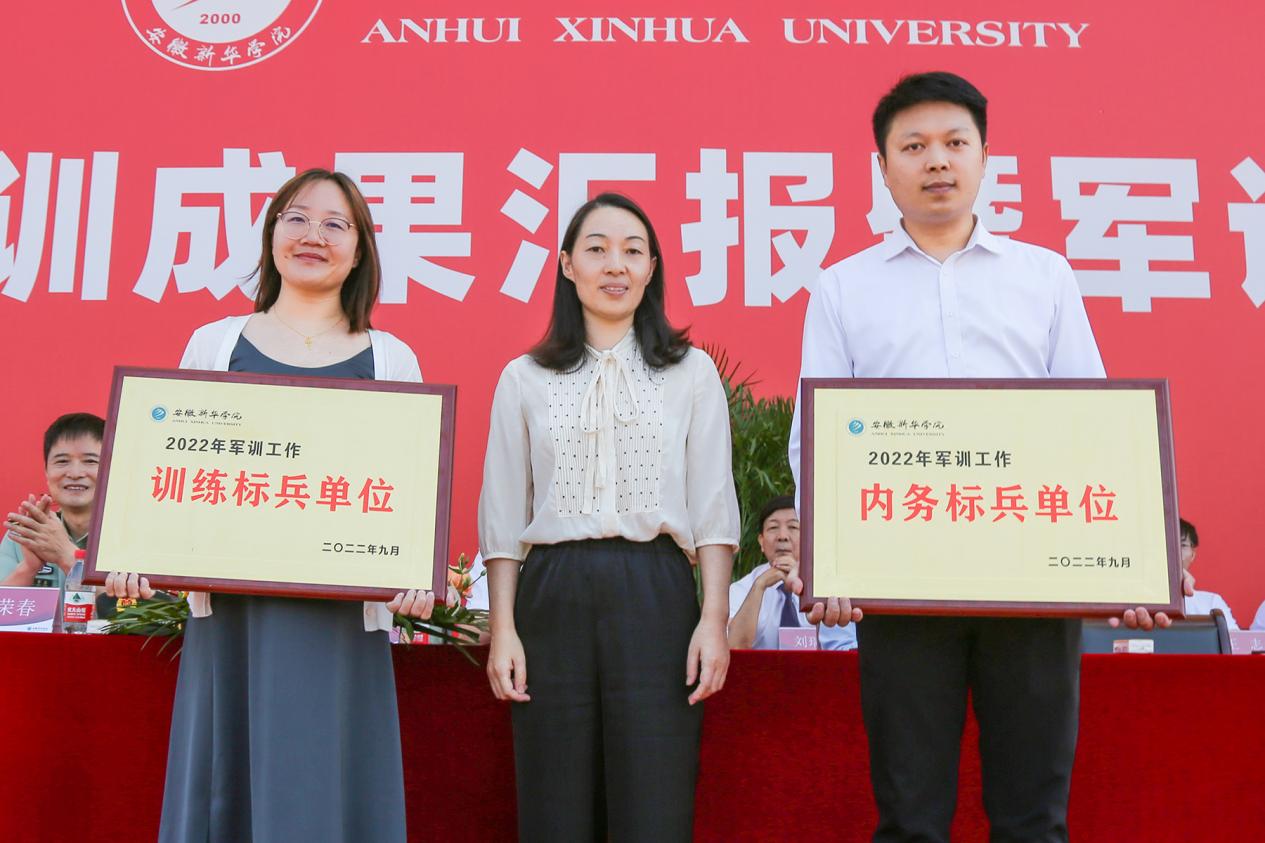 王丽为获评军训工作“内务标兵单位”“训练标兵单位”的代表颁奖。