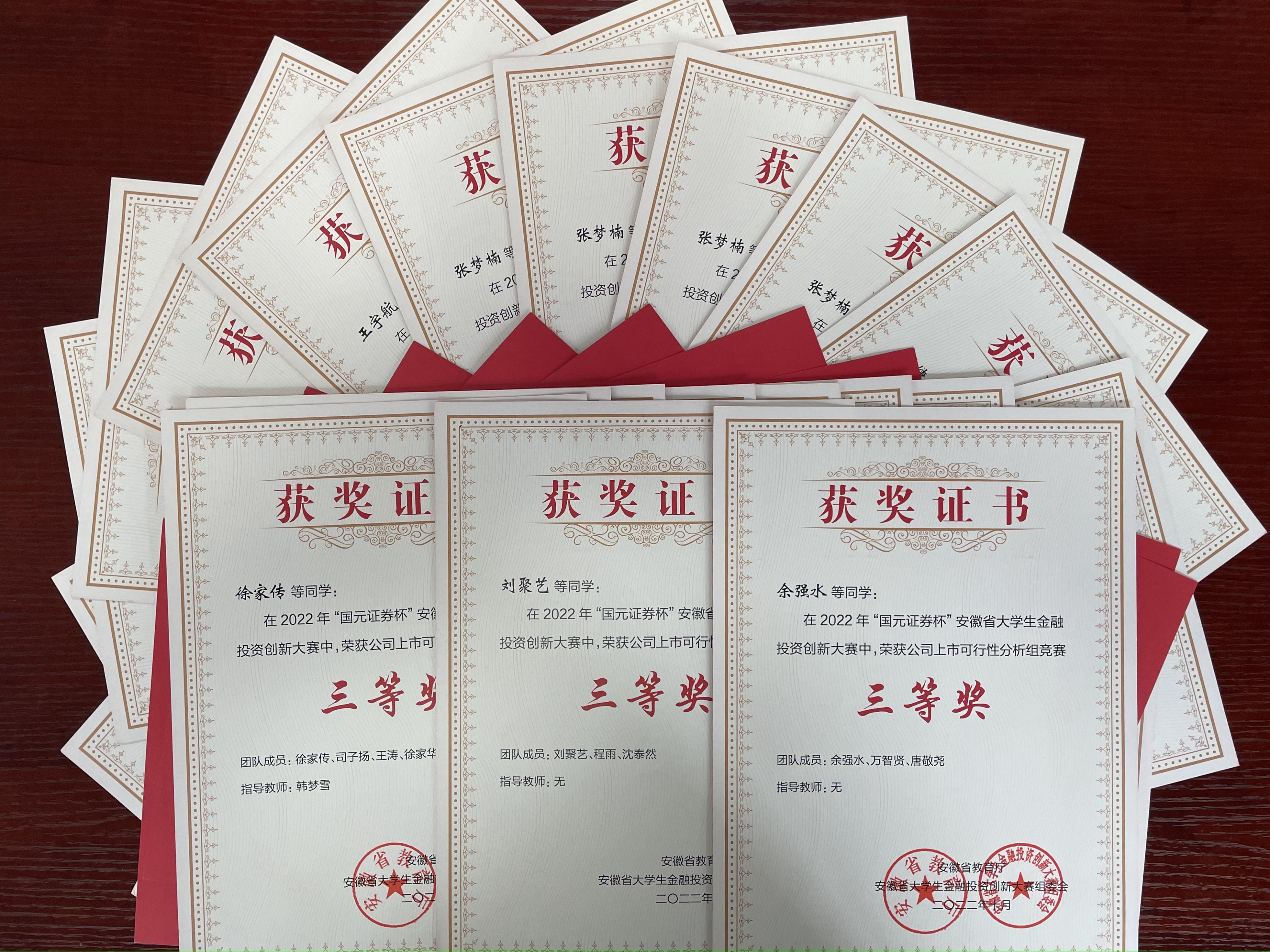 pp电子学子在第七届“国元证券杯”安徽省大学生金融投资创新大赛中再创佳绩
