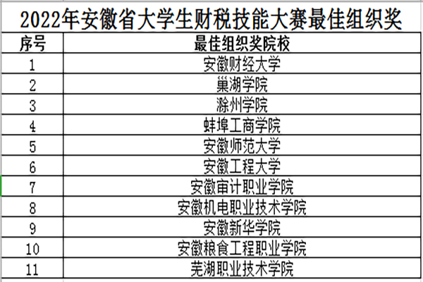 本网讯(通讯员:陈伟、夏敏)近日,2022年安徽省大学生财税技能大赛成功落下帷幕,pp电子财会与金融学院共有1支团队荣获省级一等奖,9支团队荣获二等奖,16支团队荣获三等奖,总获奖数量创学校在该项赛事中的最好成绩。同时,pp电子连续两年获赛事最佳组织奖。