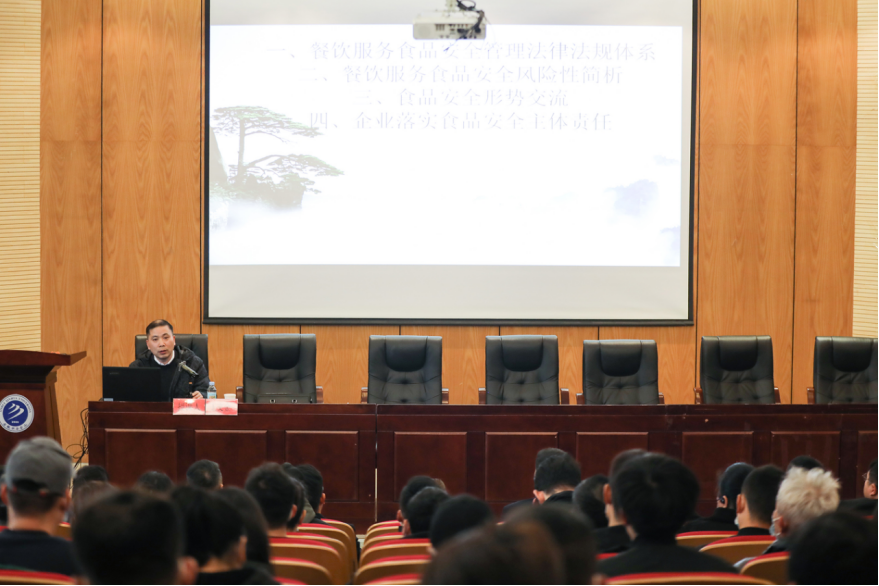 本网讯(通讯员:梁灿)3月1日,pp电子在学术报告厅召开2023年度校园食品安全知识培训暨餐饮服务A级单位表彰大会。高新区市场监督管理局副局长李清,学校副校长贺行佳,校长助理邵玲,高新区兴园社区中心党委委员、副主任、食安办主任朱跃年,高新区市场监督管理局食品药品监管科科长王文金,柏堰市场监督管理所副所长孙银鹏,保卫处副处长仇陶出席会议。121家服务单位的负责人、总务处工作人员,共计130余人参会。总务处副处长孙道芳主持会议。