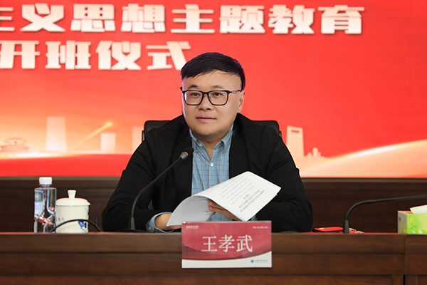 会议第一阶段,王孝武宣读《pp电子官方网站学习贯彻习近平新时代中国特色社会主义思想主题教育读书班实施方案》(以下简称《方案》)。接着邸建伟作动员讲话。会议由王丽主持。