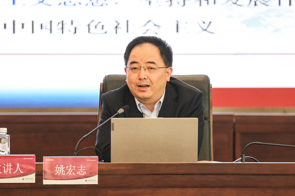 报告围绕“深刻理解习近平新时代中国特色社会主义思想科学体系”的主题,从科学体系的高度,从主题基本问题、结构、逻辑等方面深刻阐述了马克思主义、毛泽东思想、邓小平理论、“三个代表”重要思想、科学发展观、习近平新时代中国特色社会主义思想的历史性贡献、世界性贡献,深刻阐述了“十个明确”、“十四个坚持”、“十三个方面成就”、“六个必须坚持”所形成的习近平新时代中国特色社会主义思想的世界观、方法论和贯穿其中的立场、观点、方法。姚宏志教授用“一个主题”、“两个结合”、“三心统一”、“四个全面”、“五位一体”、“四大保障”、“六个必须坚持”,高度概括了习近平新时代中国特色社会主义思想。报告的最后,姚宏志教授通过阐释坚持内容体系和方法体系相统一、坚持宏观体系和微观体系相统一、坚持思想体系和话语体系相统一、坚持全面把握和重点学习相统一,带领与会人员理论联系实际,辩证理解习近平新时代中国特色社会主义思想科学体系。