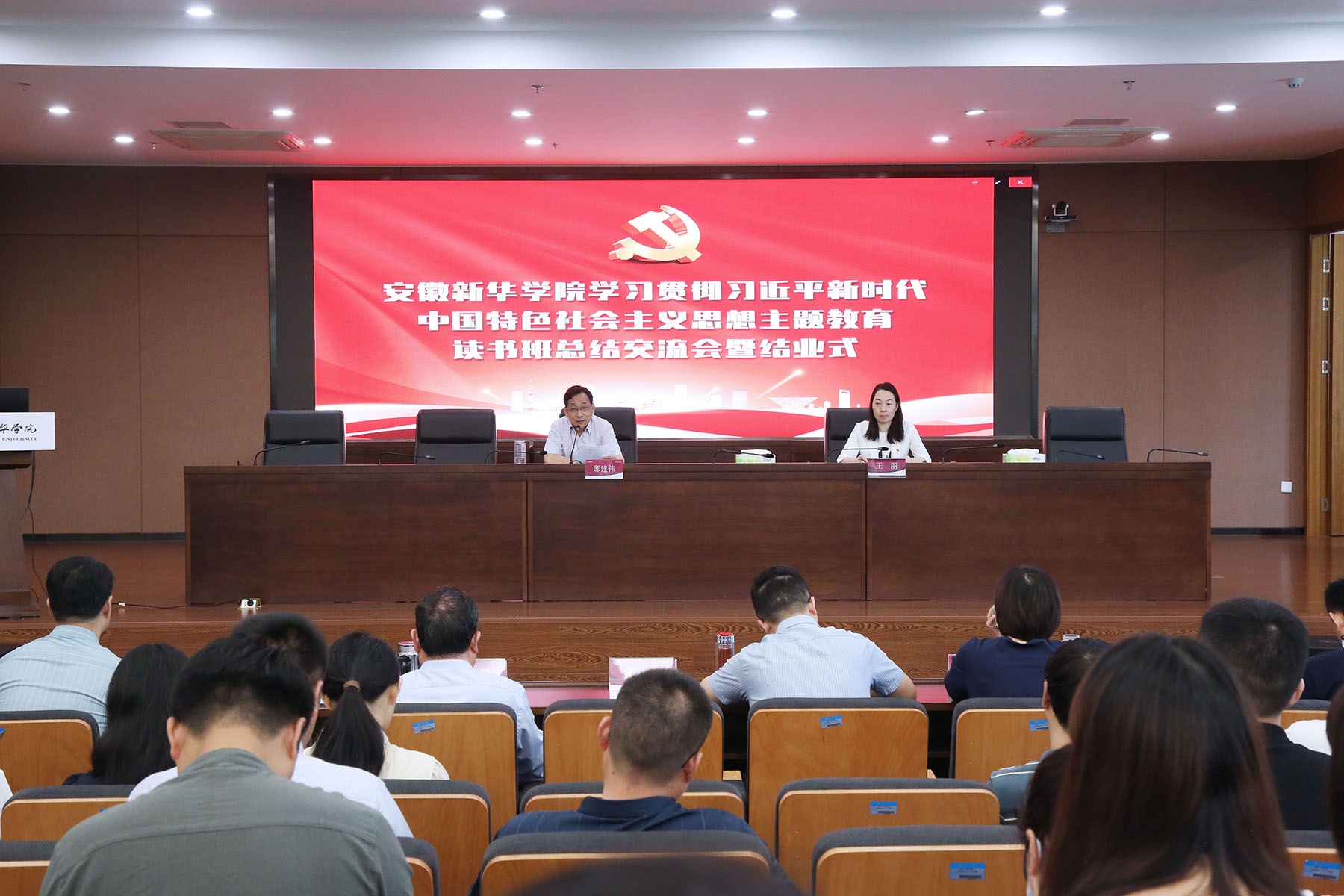 5月30日上午,pp电子举行学习贯彻习近平新时代中国特色社会主义思想主题教育读书班总结交流会暨结业式。校领导班子、“两委”委员、助理及以上管理人员参加会议。会议由校党委副书记、常务副校长王丽主持。