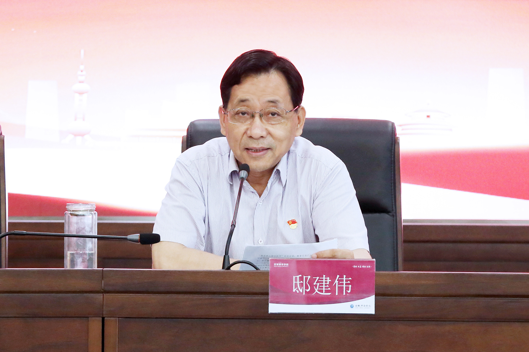 邸建伟要求,全校党员干部一要强读强记学深悟透,二要加强研讨增进交流,三要学用结合务求实效。他强调,学习贯彻习近平新时代中国特色社会主义思想是全体党员干部的终身必修课,必须带着忠诚、带着担当,持续在学懂弄通做实上下足功夫,努力在以学铸魂、以学增智、以学正风、以学促干上带好头作表率,推动主题教育落细落实、走深走实。