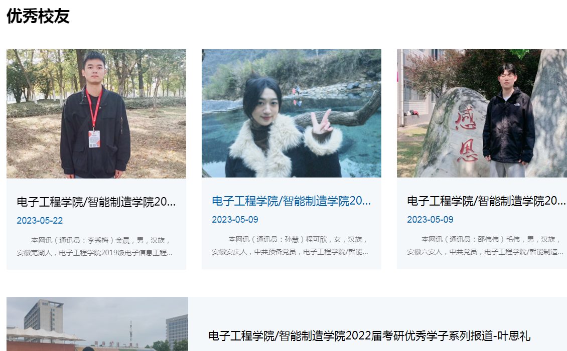 在考研竞争日益激烈的情况下,2023年电子工程学院/智能制造学院毕业生考研录取依然取得优异成绩,45名考研学子成功上岸,录取的高校主要有中国计量大学、合肥工业大学、南京工业大学等知名高校。特别值得高兴的是15栋522宿舍的毕业生,参加研究生考试的4名同学同时上岸。他们的优秀表现激励着更多学子前进的方向,树立了杰出的典范。