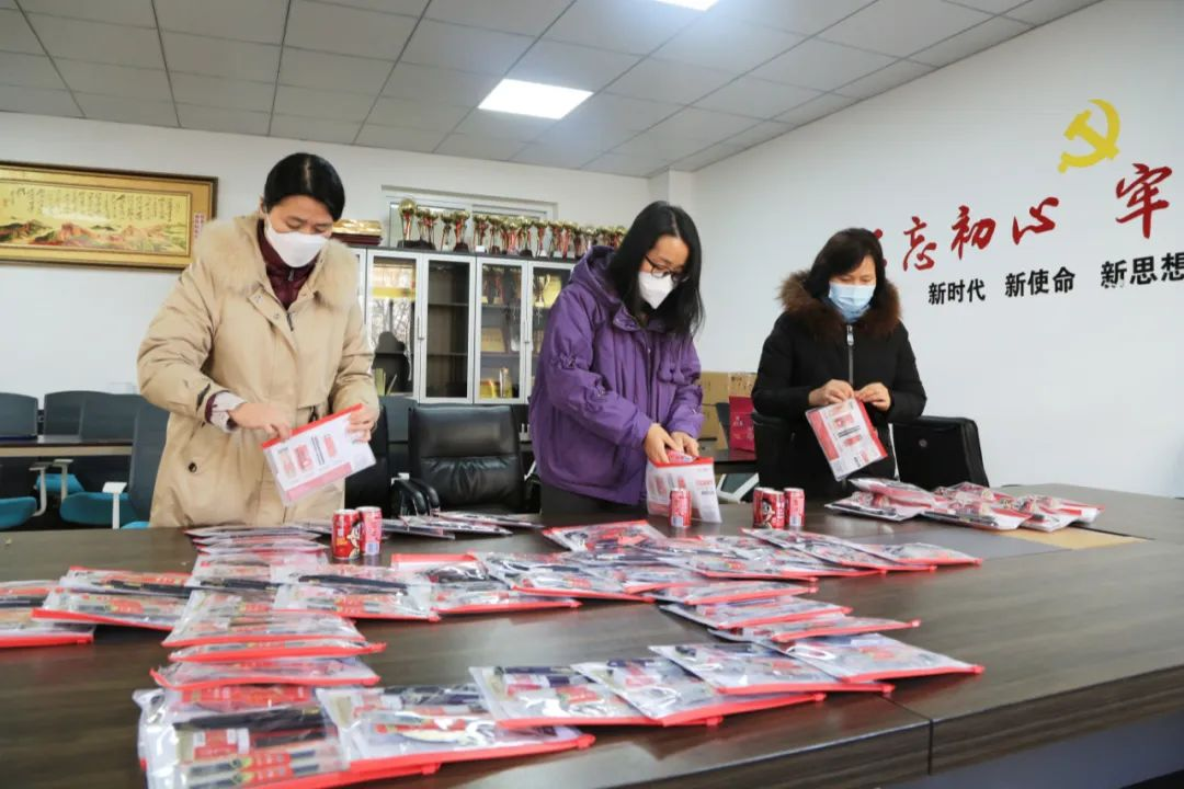 大数据与人工智能学院在考研前为学子准备了考研暖心大礼包,里面有印着“连中三元”的文具用品,也有补充体力、寓意成功的旺仔牛奶……