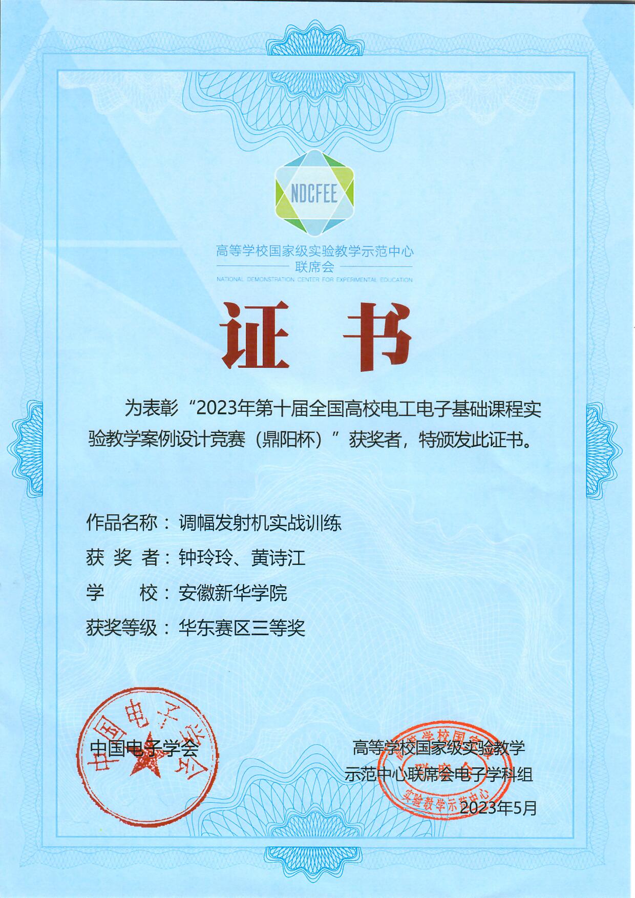 pp电子电子工程学院/智能制造学院教师在全国高校电工电子基础课程实验教学案例设计竞赛(华东赛区)中荣获三等奖