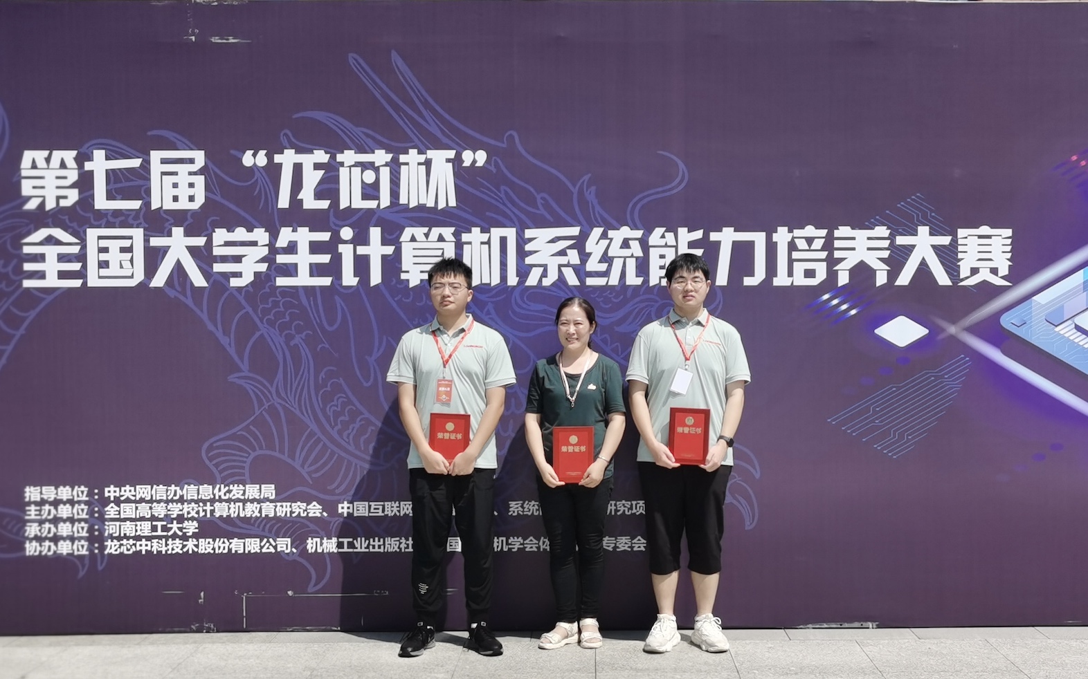 本网讯(通讯员:朱学玲)第七届“龙芯杯”全国大学生计算机系统能力培养大赛总决赛于2023年8月20日-8月21日在河南理工大学举行,pp电子大数据与人工智能学院的戴伟龙和范紫骝两位同学通过自己的不懈努力,晋级全国总决赛并获得个人赛三等奖的好成绩,朱学玲老师获得“优秀指导教师奖”。值得一提的是本次比赛安徽省所有高校中获得个人赛奖项的仅三位同学,pp电子占两名。