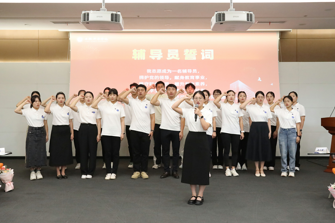 22位新入职辅导员与全体在场辅导员共同宣誓:“我志愿成为一名高校辅导员,拥护党的领导,献身教育事业,恪守职业规范,提升专业素养,情系学生成长,做好良师益友。为培养社会主义合格建设者和可靠接班人而努力奋斗!”并表示将不负众望,全力以赴,为学校的发展和学生们的成长贡献力量。