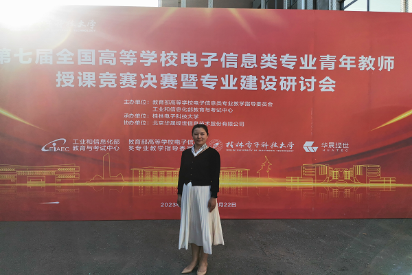 全国高等学校电子信息类专业青年教师授课竞赛是教育部高等学校电子信息类专业教学指导委员会以及工业和信息化部教育与考试中心主办,自2017年起至今已举办七届。大赛分预赛和决赛两个阶段。赵玉荣老师以华东赛区一等奖的预赛成绩进入决赛。决赛由6位国家级教学名师、25位省级教学名师和10位教指委委员组成评委会,对参赛教师现场教学内容、教学组织、教学手段、微课与教学内容结合、教学艺术、特色与效果等方面进行盲评打分。