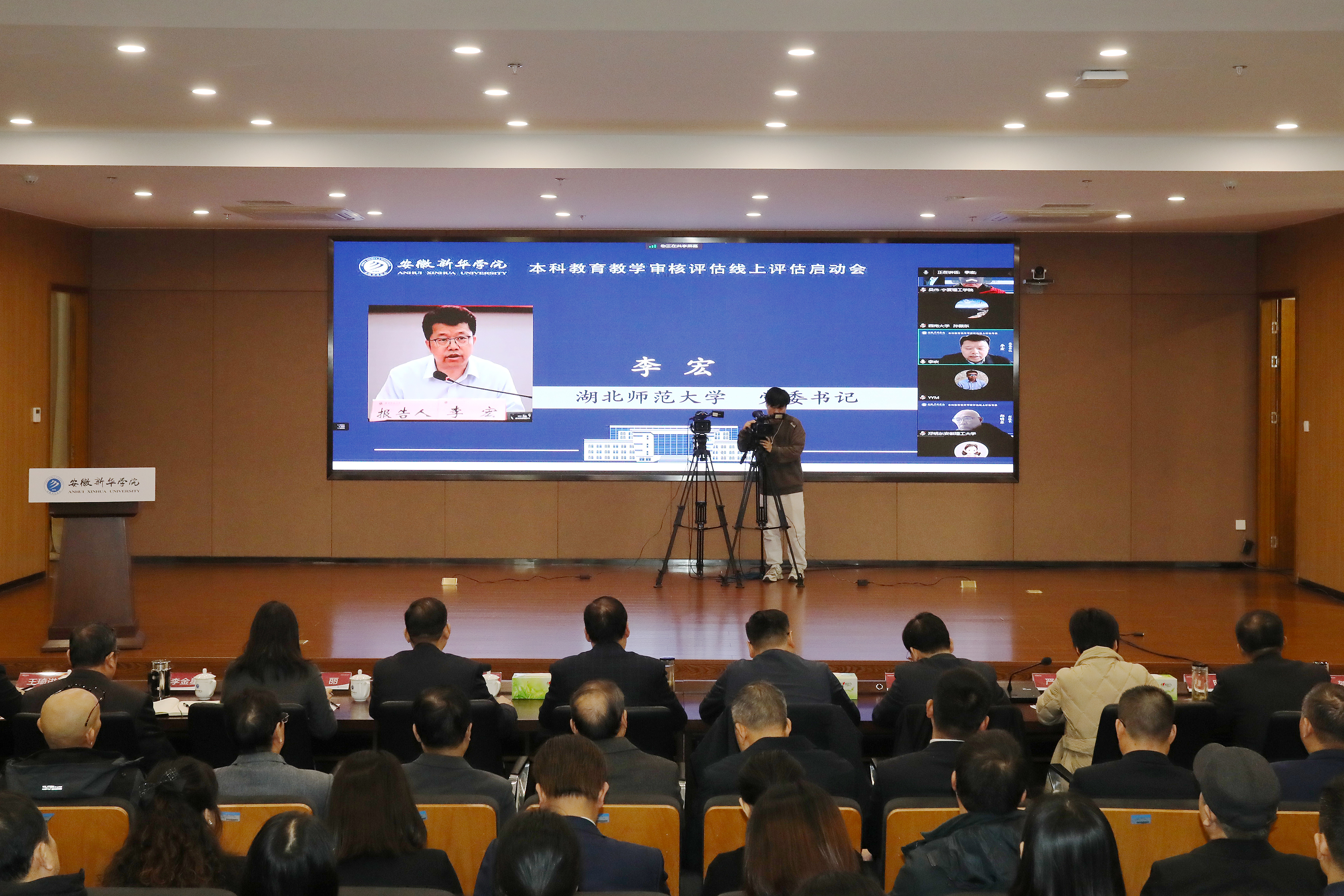 本网讯(通讯员:汪青 王亚君 摄影:翟漱文)11月13日,pp电子召开教育部新一轮本科教育教学审核评估线上评审启动会。教育部本科教育教学审核评估专家组组长、湖北师范大学党委书记李宏及专家组全体成员,省教育厅评估中心负责人,新华集团领导和全体校领导出席会议。学校中层及以上管理人员,校级督导代表、教师代表、学生代表参加会议。会议采取“线上+线下”相结合的形式召开,第一阶段由省督导专员、校党委书记邸建伟主持,第二阶段由专家组组长李宏主持。