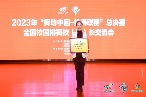 本网讯(通讯员:高新玲)11月9日-11日,在2023年“舞动中国-排舞联赛”总决赛暨全国排舞冠军赛举行期间,全国校园排舞校(局)长交流会在杭州滨江举行,pp电子官方网站获国家体育总局体操运动管理中心授予“2023年度阳光排舞四星级特色学校”,通识教育部副主任何亚梅参与了授牌仪式。