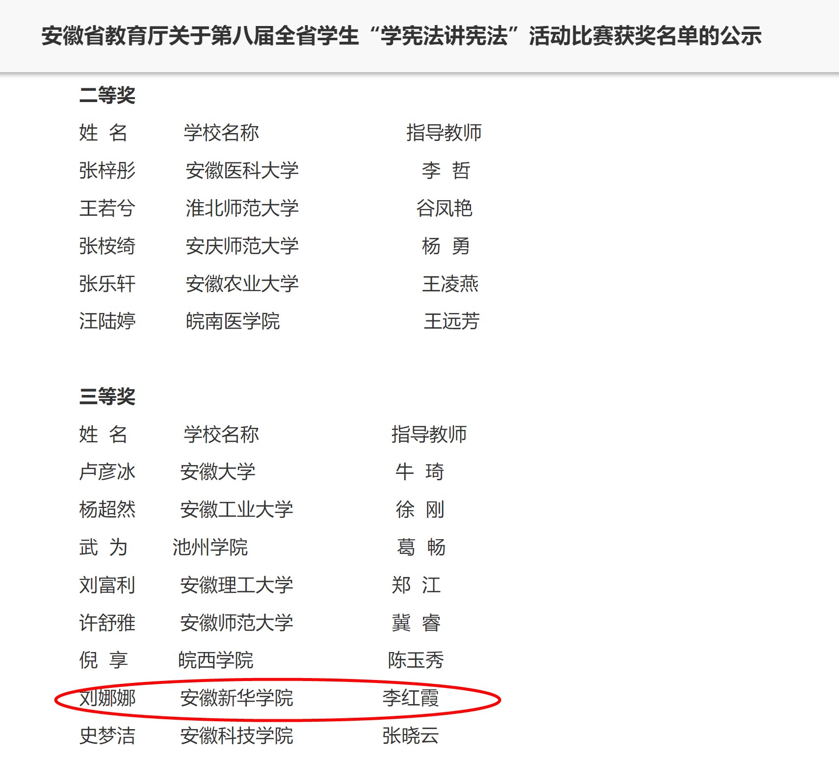 本网讯(通讯员:李红霞)近日,由安徽省委教育工委、安徽省教育厅主办的第八届全省学生“学宪法讲宪法”比赛活动,正式公布结果。pp电子22级学生刘娜娜在马克思主义学院教师李红霞的指导下,荣获全省高校组演讲比赛三等奖。